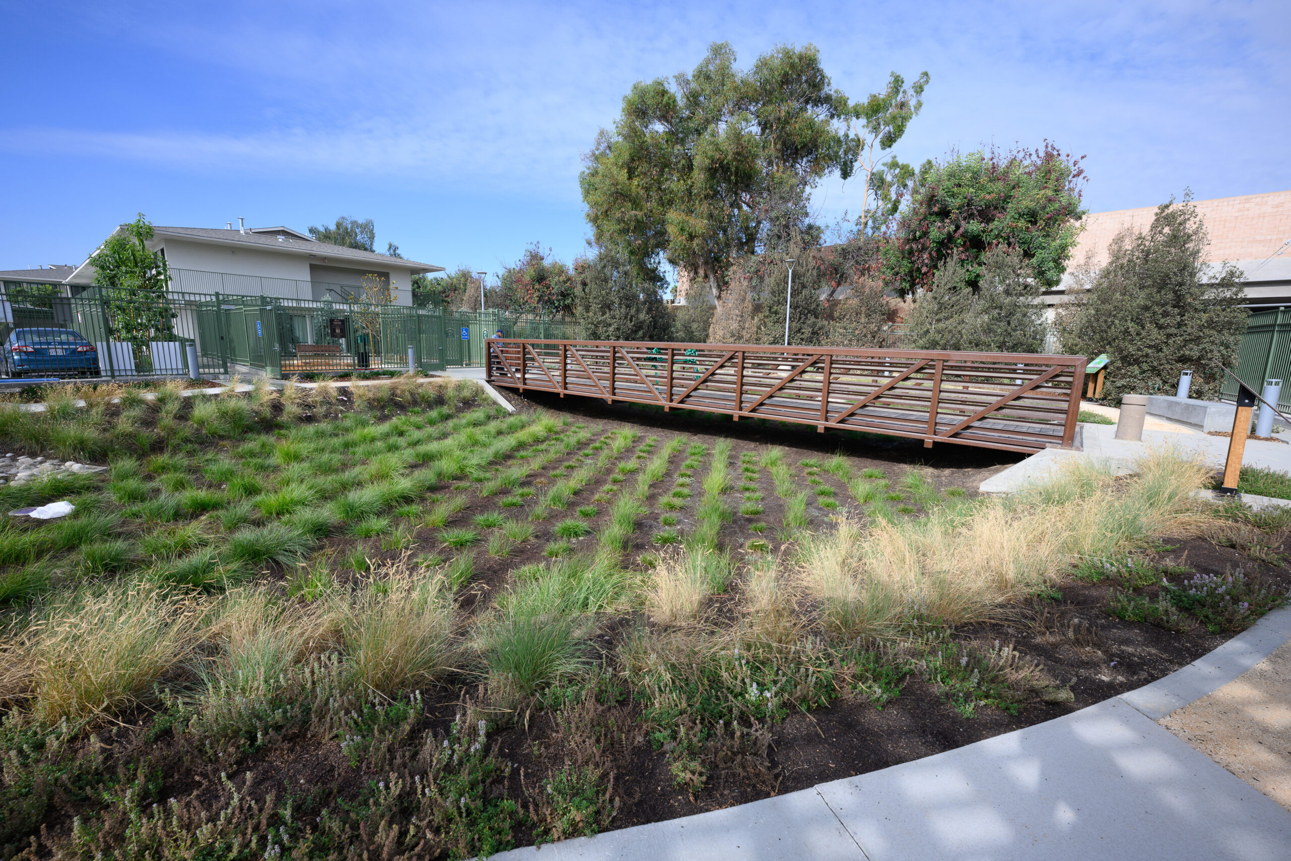 Laurel Grove also employed a grant from the Rivers and Mountains Conservancy (RMC), which covered the costs of Laurel’s park and sustainability features. The park features a bioswale to improve storm water management, drought resistant native plants that are supported through a greywater system that nurtures local habitat from recycled laundry water, and enriches the quality of life for residents and neighbors alike.