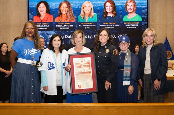Los Angeles, CA – Los Angeles County Supervisor Janice Hahn honored two extraordinary members of the LA County Fire Department during this morning’s meeting of the Board of Supervisors, Captain Sheila Kelliher-Berkoh and Fire Fighter Specialist John Pfau.