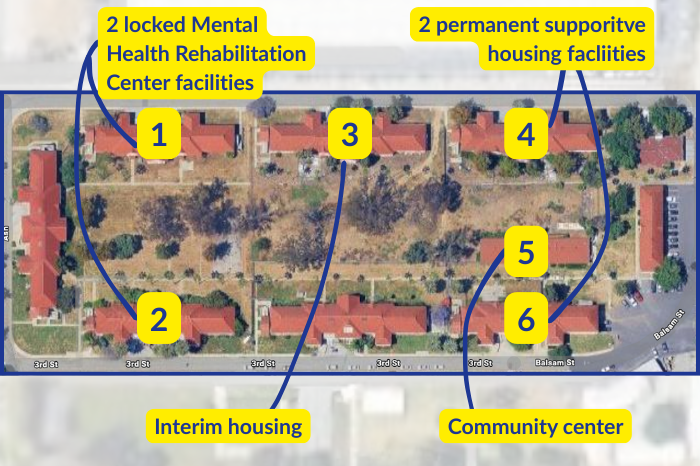 The Los Angeles County Care Community will be a state-of-the-art mental healthcare campus where six unused buildings at the Metropolitan State Hospital will be converted into various types of mental health treatment and housing for transitional aged youth and adults.