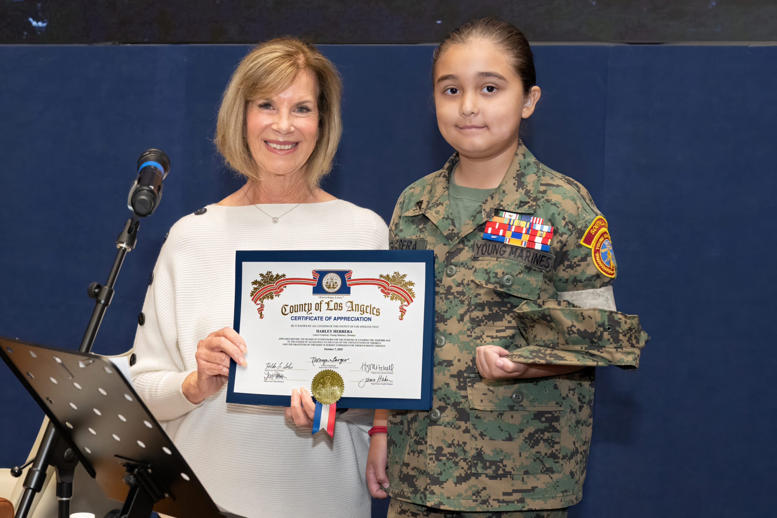 “Harley did such a wonderful job leading us in the Pledge of Allegiance,” said Supervisor Hahn. “She’s confident, kind, and already making a difference in her community. I know she has a bright future ahead of her.”